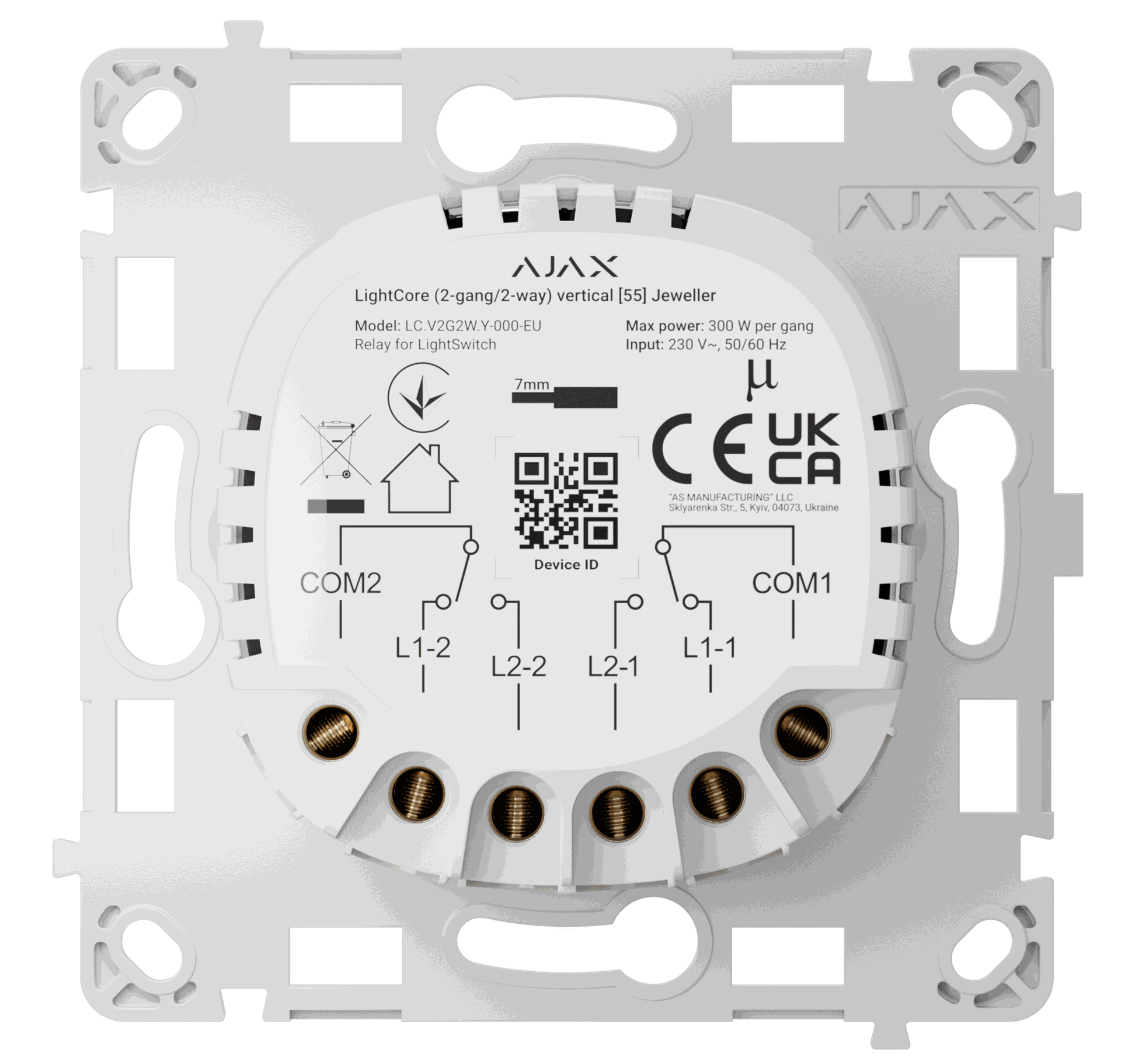 • LightSwitch (Crossover) Jeweller étend les capacités des interrupteurs va-et-vient en y ajoutant des points de contrôle de l'éclairage. Les interrupteurs de croisement sont installés entre deux interrupteurs va-et-vient, ce qui permet de contrôler la même source lumineuse à partir de trois endroits différents ou plus. Cette solution permet un contrôle flexible de l'éclairage dans les grands bureaux, les installations de produc​tion ou les habitations privées.